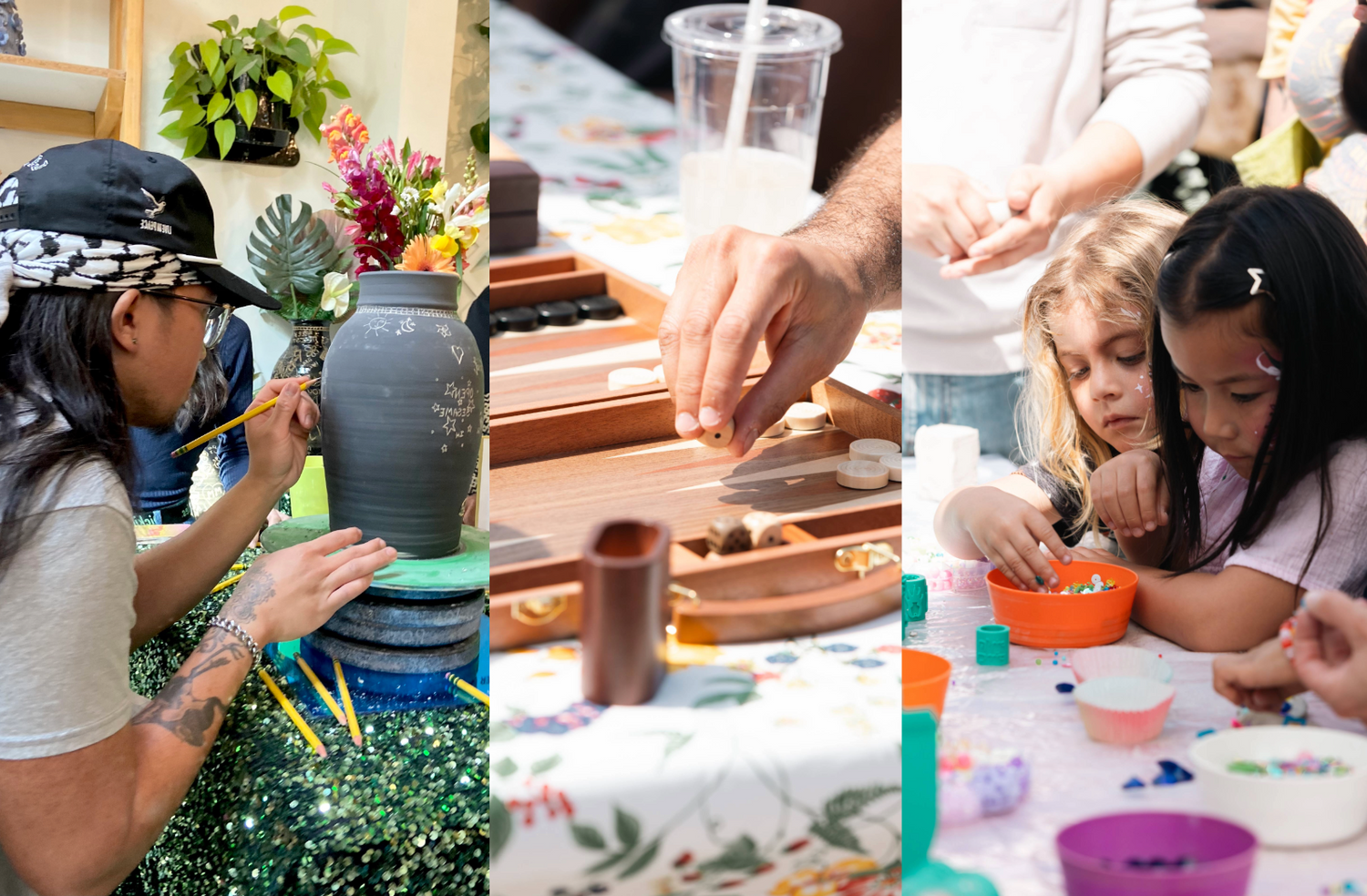 In the Norouz spirit of rebirth and light over darkness, our activities focus on cultural resilience. Re-imagine your flags with Khale's House, commemorate a lost one on the haft sin altar, get custom Persian calligraphy or permanent jewelry, learn about Palestinain tatreez & play backgammon. There's also a seperate indoor kids craft area where parents can relax.